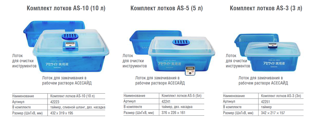 Комлекты лотков для дезинфекции и стерилизации изделий медицинского назначения с использованием препарата АСЕСАЙД