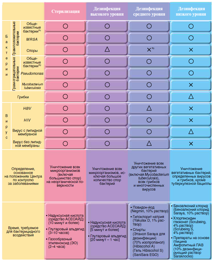 *3 Дезинфектанты на основе хлористых соединений эффективны только против небольшого числа спор